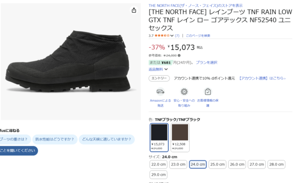 アマゾンでザ・ノース・フェイスのRAIN LOW GTXを入手