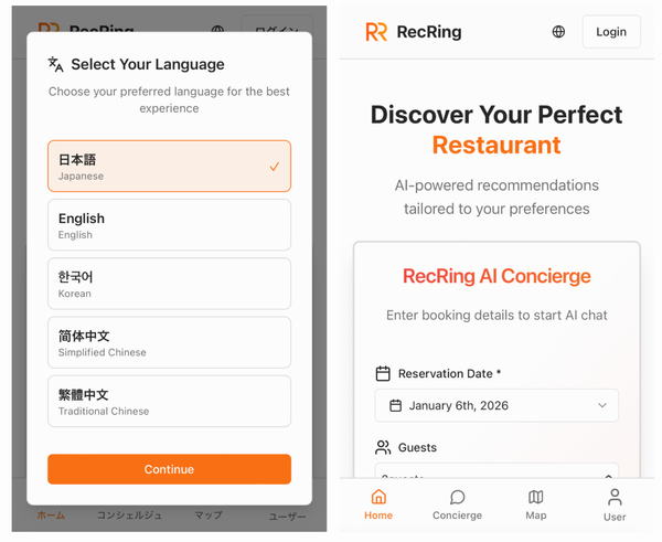 観光分野に特化した東大発AIスタートアップの株式会社トリップエックスは1月13日に、箱根DMO(一般財団法人箱根町観光協会)と共同で開発したインバウンド旅行者向け飲食店AI予約サービス「RecRing(レックリング)」の正式リリースを発表。箱根湯本周辺を対象エリアとして、英語・中国語(繁体字/簡体字)・韓国語に対応し、AIによるレコメンドや代理予約の機能を備えているという。