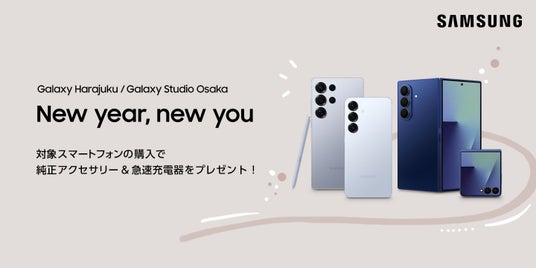なお、Galaxy Harajuku(東京・原宿)およびGalaxy Studio Osaka(大阪・なんば)でも、一部内容が共通するキャンペーン「Galaxy Harajuku / Galaxy Studio Osaka New year, new you」を実施いたします。詳細は、本リリース下部に記載の各キャンペーン概要およびキャンペーンページをご確認ください。