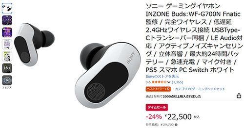 【Amazonタイムセール】ソニー ゲーミングイヤホン「INZONE Buds(WF-G700N)」をチェック!