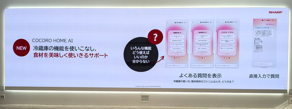 最大の特徴である生成AIサービスへの対応は、まさに「食品価格の高騰」に対するソリューションだ。同社のスマートホームアプリ「COCORO HOME」内のサービス「COCORO HOME AI」を通じて、ユーザーは自然な言葉で冷蔵庫と対話ができる。この機能は、単に質問に答えるだけでなく、「冷蔵庫の機能を使いこなし、食材を美味しく使い切る」ことを強力にサポートする。