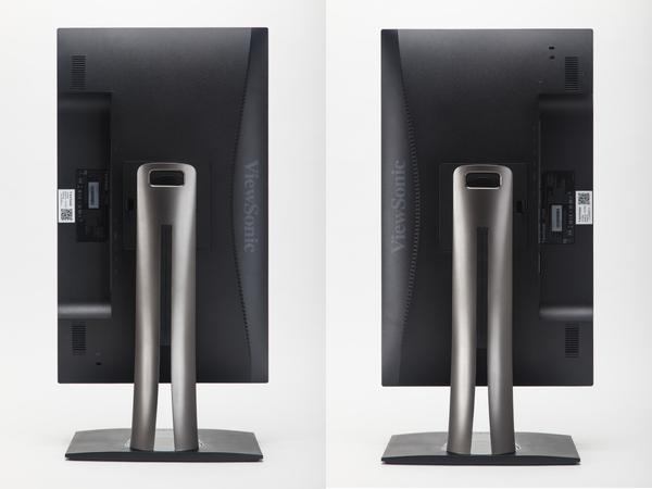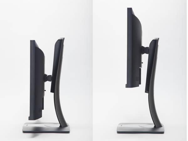 「VP2456」の本体サイズは、幅539mm×高さ388.5mm×奥行き215mmと、23.8型としては標準的な大きさ。しかし、このクラスで約130mmの高さ調整機構を装備しているほか、チルト機能は-5度~21度の範囲で可能だ。