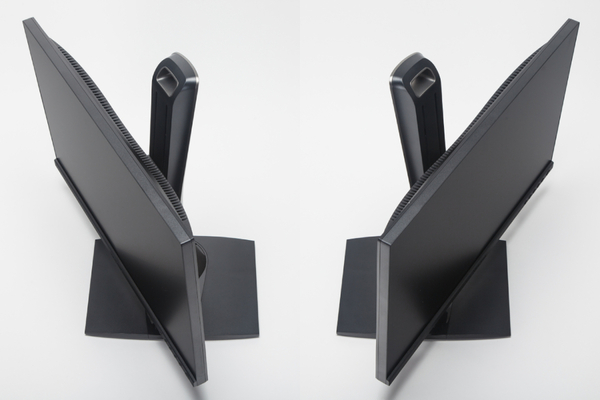 さらに、左右の首振りとなるスウィーベル機能も各120度まででき、位置調整機能が充実している点も見逃せない。しかも、画面を回転させるピボット機能も有しており、時計回りと反時計回りのどちらでも90度まで回して縦画面にもできる。