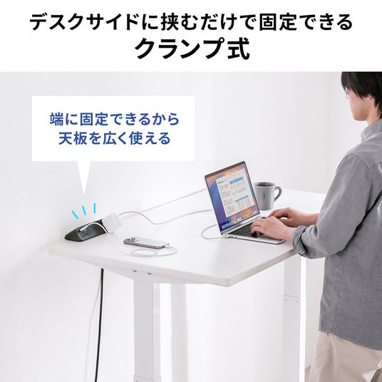 デスクサイドに挟むだけで固定できるクランプ式