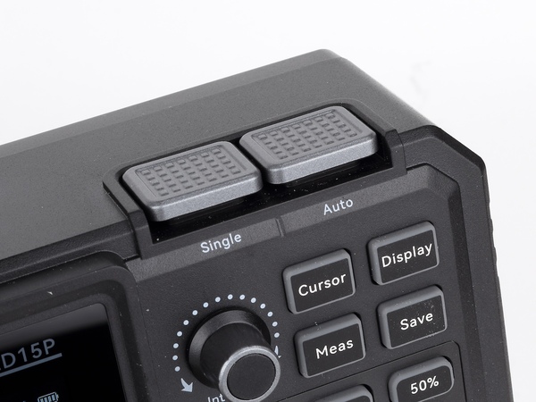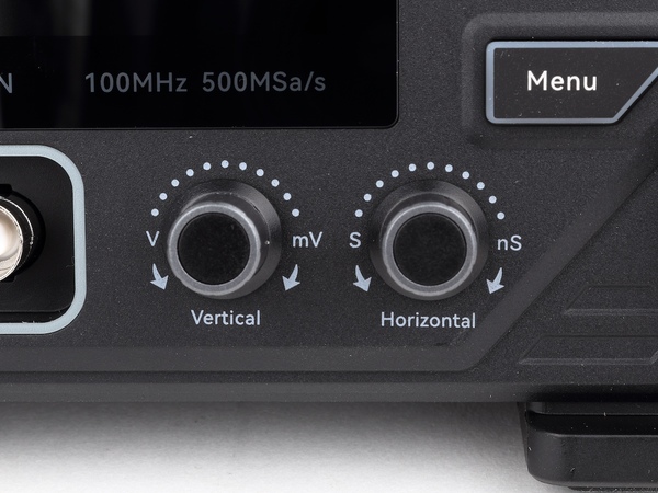 さらにもう1つ、物理ボタンでしか操作できないのが、前面下部にある「Vertical」ダイヤル。縦軸(電圧)のレンジを変更するものです。SingleかAutoボタンを押せば、自動で最適なレンジにしてくれますが、自分で調整したいときに重宝します。