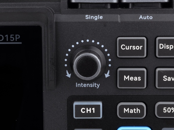 上部にある「Intensity」というダイヤルは、Chごとの波形の位置やカーソル移動に使うもの。実はドラッグ操作でも波形やカーソルは動かせますが、指先の微妙な動きでズレやすく、結構イラっとするポイントだったりします。それがダイヤルなら正確に動かせますから、かなり快適です。