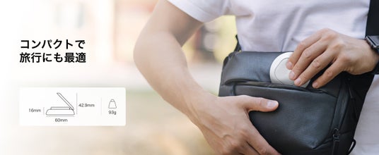 コンパクト&ポータブル設計: 重さわずか93g、厚さ16mm(スタンド収納時)の軽量スリム設計。旅行や外出時もバッグの隙間に収まり、持ち運びに最適です。