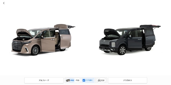 さらに、すべてのドアやボンネットを開けた状態での表示や、助手席・後席中央からの視点移動など、実際にショールームで車を見ているような体験をオンラインで再現している。