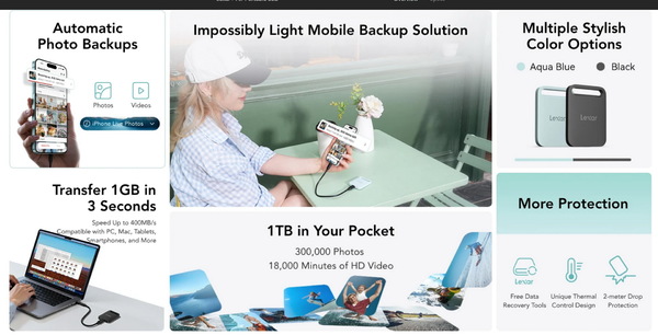 スタイリッシュで超軽量、わずか0.6ozのポータブルストレージ。Lexar Appによる自動バックアップ機能を備え、クリエイターやモバイルユーザーがどこでも高速かつシームレスにデータを扱える設計です。