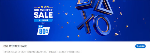 PlayStation Storeでは「BIG WINTER セール」を開催中です。PS5向けの人気タイトルを中心に、多数のダウンロード版ソフトが割引対象となっており、一部タイトルでは最大80%オフのセール価格で購入できます。