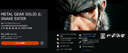 『METAL GEAR SOLID 3 SNAKE EATER』をベースにしたリメイク作品で、オリジナルのステルスアクションと物語を現行機向けに再構築したタイトルです。