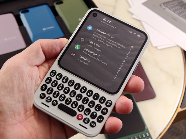 iPhoneにQWERTYキーボードを装着できる一体型カバー「Clicks Keyboard」を販売しているClicksは、Android搭載のスマートフォン「Clicks Communicator」を公開した。ただし、製品はまだモックアップであり、動作するモデルの展示はなかった。とはいえ、本体のサイズや重量は実物と同等、キーのサイズも同じものだという。発売時期は2026年中とのこと。