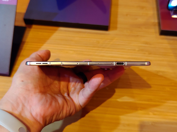 本体を開いたときのサイズは8.1型。解像度は現時点では不明だ。また本体サイズもまだ公開されていない。開いたときの厚みは4mm前後であり、最新の折りたたみモデルとして十分な薄さが感じられた。チップセットはクアルコムのSnapdragon 8 Gen 5クラスの搭載が予定されている。