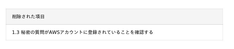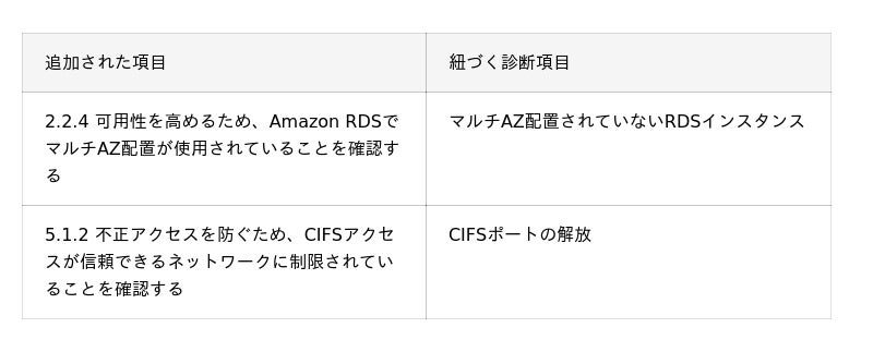 以下の項目が削除されました。なお、この項目は手動確認が必要な内容であり、Cloudbaseの診断項目との紐付きはございません。