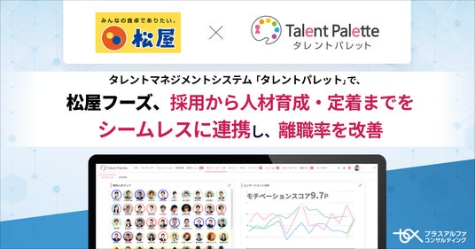 株式会社プラスアルファ・コンサルティング(本社:東京都港区、代表取締役社長:三室克哉、証券コード:4071)は、同社が提供するデータに基づく人材の活用、人的資本経営の実践、人事業務のDX化、リスキリングの推進などを目的に、多くの大手エンタープライズ・中堅企業で導入が進むシェアNO.1(*)のタレントマネジメントシステム 「Talent Palette(以下:タレントパレット)」 の株式会社松屋フーズホールディングス(本社:東京都武蔵野市、代表取締役社長:瓦葺 一利、以下:松屋フーズ)への導入事例を公開しました。