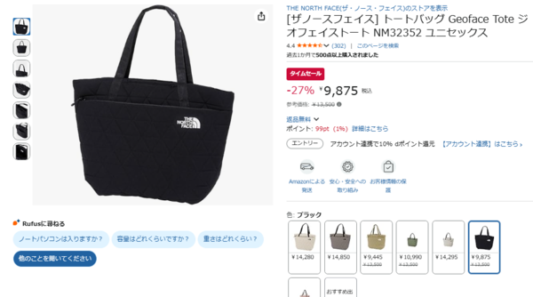 ザ・ノース・フェイスのジオフェイストートが27%オフ!