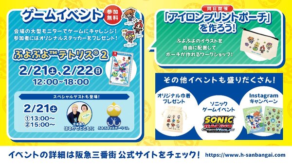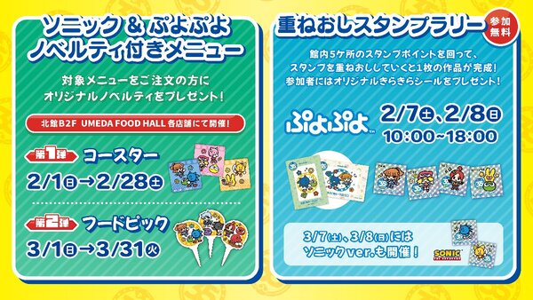 「ソニック」と「ぷよぷよ」の35周年を記念し、大阪・梅田のショッピングセンター「阪急三番街」にて、『ソニ×ぷよフェスティバル in 阪急三番街』を開催。期間中は館内がコラボ装飾やフォトスポットで彩られる。