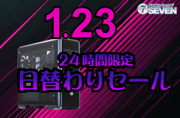 セブンアールジャパンは1月23日に、最新のBTOパソコンを提供するパソコンショップSEVENにて24時間限定セールを実施する。主役となるのは、新たなゲーミングPCやデスクトップPCで、最大51,000円の値引きが期待できる。