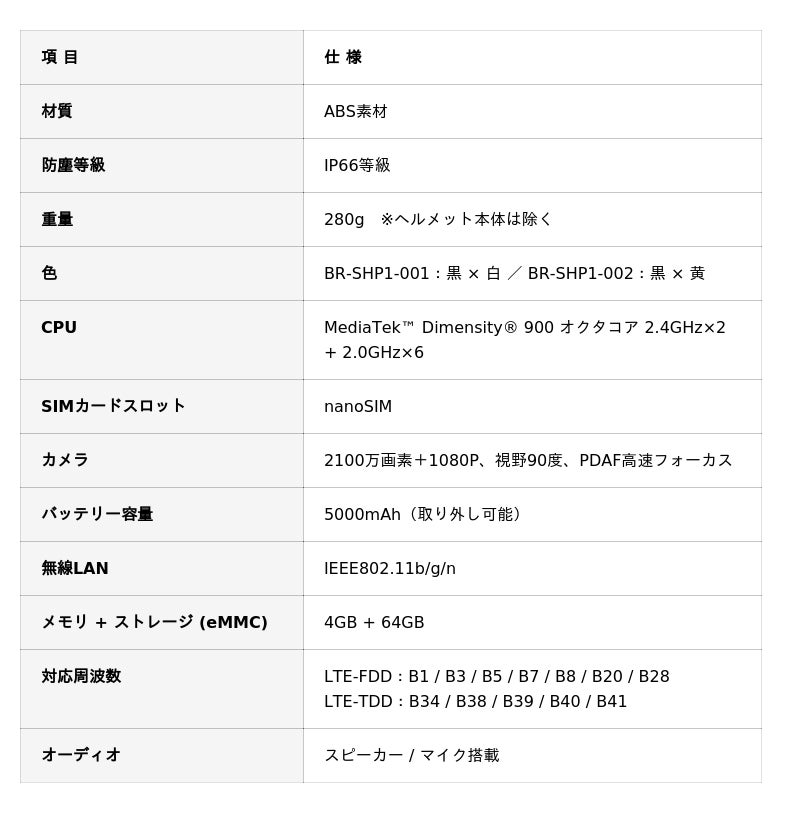 - 2,100万画素カメラ: 高解像度カメラ(PDAF高速フォーカス対応)を搭載し、鮮明な現場映像を管理者に共有します。