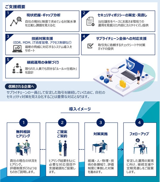 「情報セキュリティ体制構築コンサルティング」で「サプライチェーン強化に向けたセキュリティ対策評価制度」対応を支援
