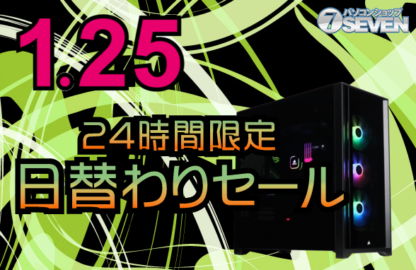セブンアールジャパンが運営するパソコンショップSEVENは、1月25日に『2026/1/25 24時間限定セール』を開催する。このセールでは、最新のゲーミングPCやデスクトップPCが最大86,000円オフで提供される特別な機会だ。