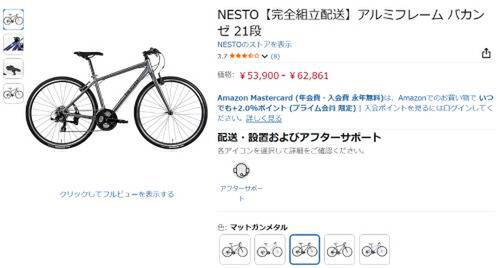 NESTO(ネスト)のクロスバイク「VACANZE(バカンゼ)」が、ただいまAmazonで53,900~62,861円で販売中です。
