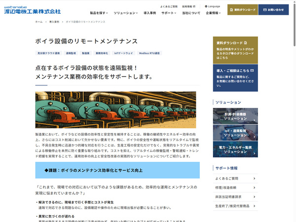 渡辺電機の製品群は自社開発の電力計測機器や無線センサー、各種装置に取り付けられる計測器などの末端デバイスが用意されており、そこから収集できるデータを集約するIoTゲートウェイがソリューションの軸となっている。ゲートウェイは自社製品だけでなく、Modbus RTU(RS-485)のプロトコルに対応している機器であれば、他社製の計測機器からもデータを取り込める。ゲートウェイ内部にはWebサーバーが組み込まれており、ゲートウェイ単体で画面表示やデータ確認を行えるので、クラウドなどの外部にデータを出せない顧客にも対応している。