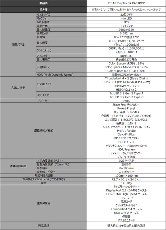 製品詳細:https://www.asus.com/jp/displays-desktops/monitors/proart/proart-display-8k-pa32kcx/