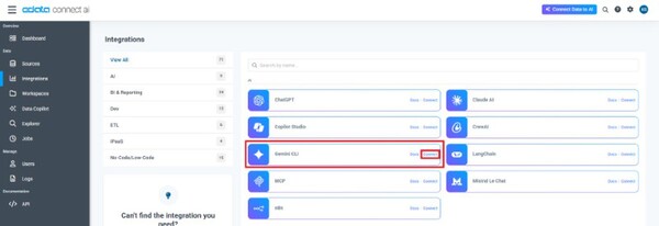 「Integrations」タブの「Gemini CLI」の「Connect」をクリックします。