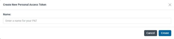 「Name」に任意の名称を入力して、次の画面に表示されるPersonal Access Token (PAT) の文字列をメモして保存しておきます。