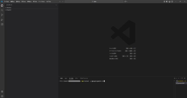VS Codeの統合ターミナルを開き、npmを使用してグローバルにインストールします。