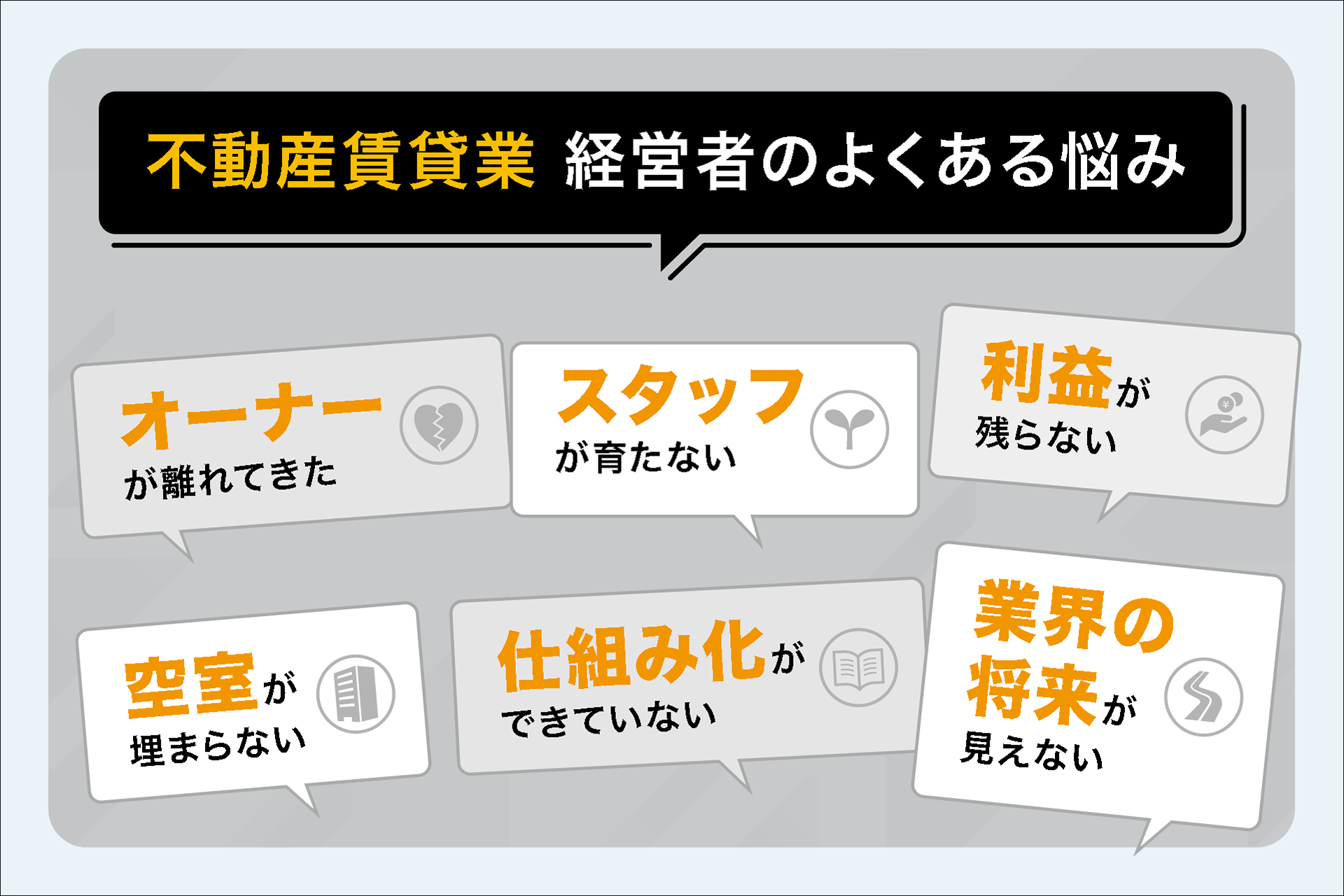 不動産賃貸業界では、次のような悩みが頻発しています。