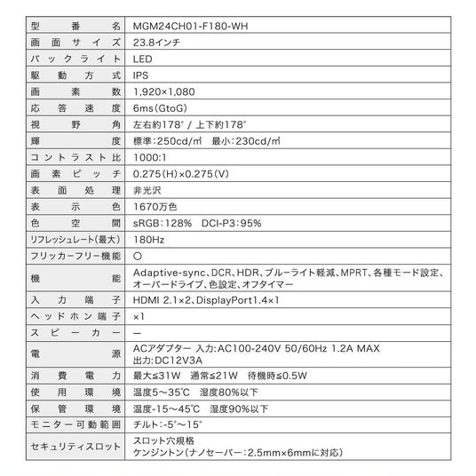 ジェネリック家電ブランド「MAXZEN」を展開するマクスゼン株式会社(本社:東京都江東区、代表取締役社長:清水敏光)は、ゲーミングモニター(MGM24CH01-F180-WH)を、2025年12月25日より発売します。