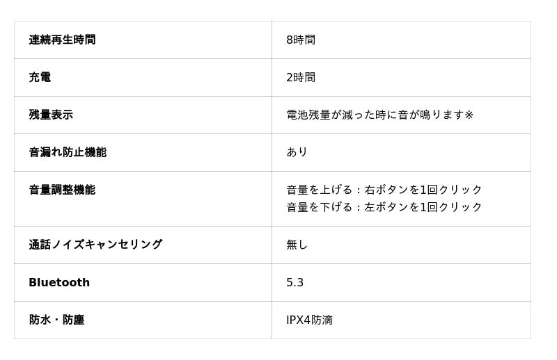 ※バッテリー残量が20%以下になると、5分間隔での通知音によるアラートに加え、テンプル横の青色LEDが約14秒ごとに点滅