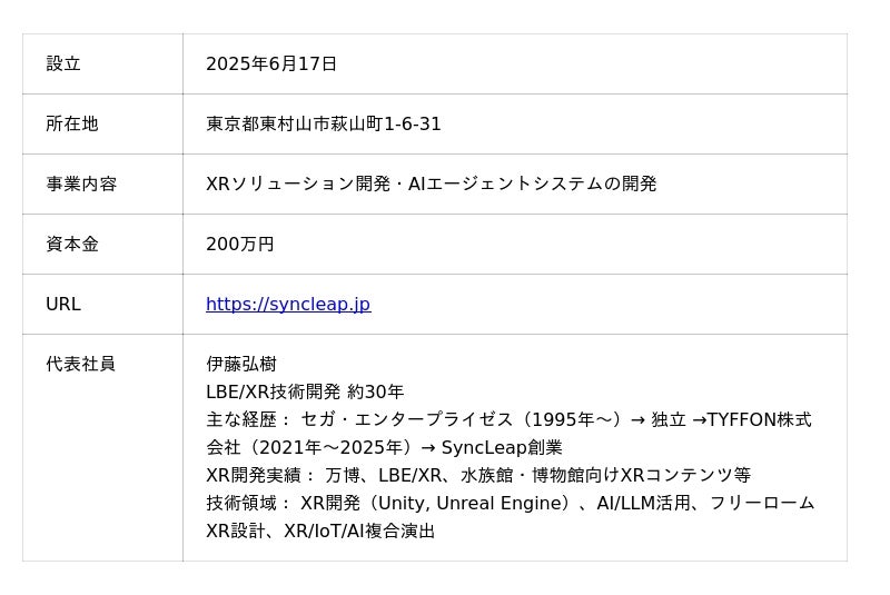SyncLeapのミッションは「XR × AIの可能性を引き出し、エンターテインメント体験を豊かにする」。XRとAIは別々の技術ではなく、組み合わせることで新しい価値を生み出せる--この信念のもと、SyncLeapではXRシステム開発とAIエージェント開発の両輪で事業を展開しています。