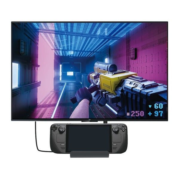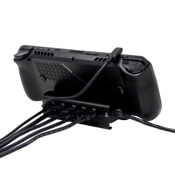 「USB-CDKG01」は、厚みがある2つ折り型のゲーミングUMPCなどはスタンド部の幅に収まらない可能性があるのには注意が必要だが、長時間持つと重さが堪える本体を据え置いてPCを充電しつつ、複数の周辺機器を接続でき、しかも大画面に出力しながら、安定した通信回線でPCゲームを楽しめるのがこの製品の最大の魅力。手元にあるとゲーム体験が向上する魅力的なアイデアガジェットだ。