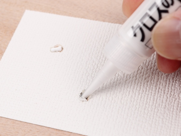 もうひとつの「クロスの穴うめ材スーパー」は、使い方がさらにシンプル。穴を埋め、はみ出した部分をヘラで拭き取って乾かすだけです。