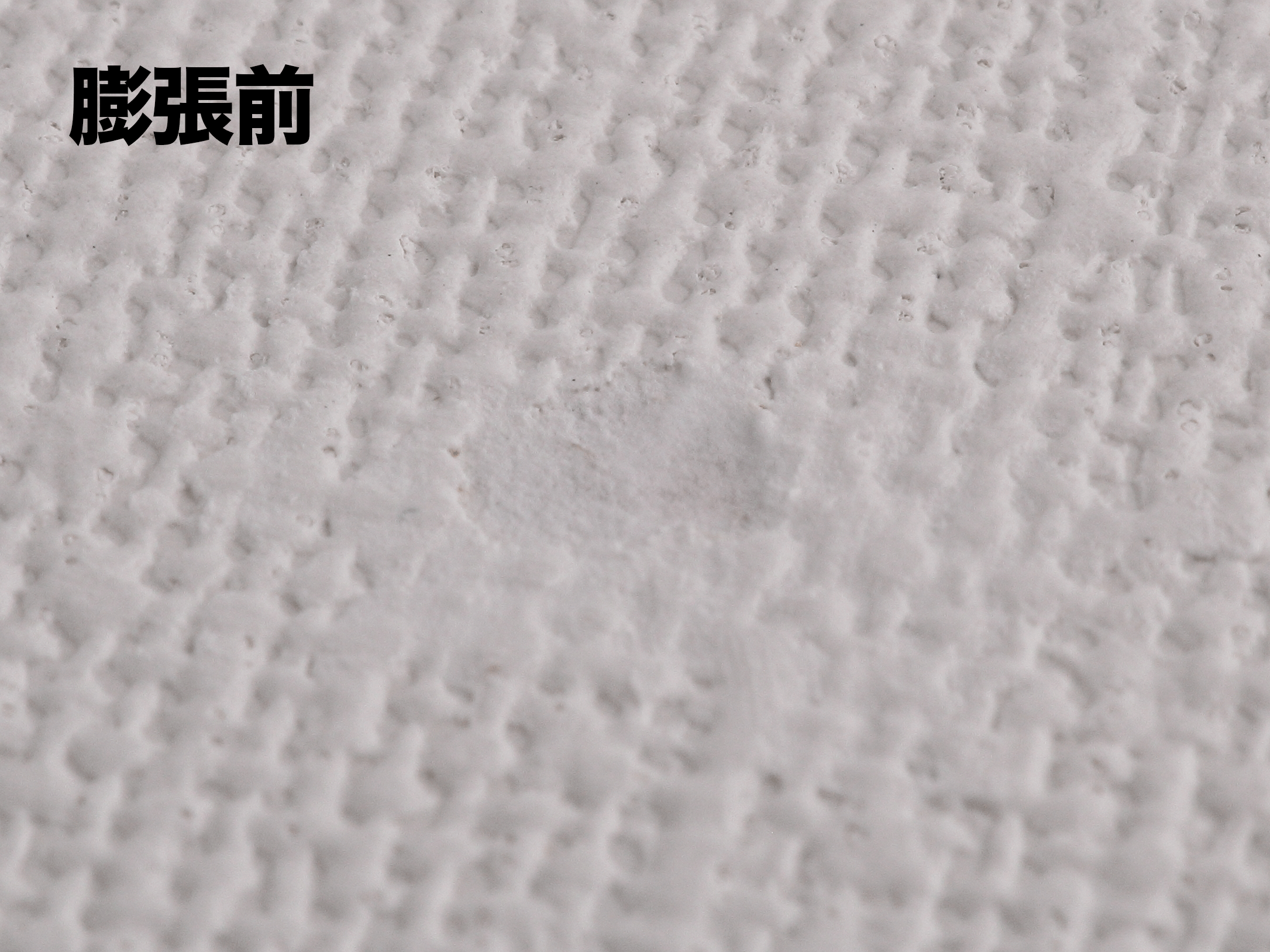 製品情報を見ると約5倍に膨らむとのことでしたが、試した感じでは、厚みが2倍近くになるという印象です。そこまで大きく膨らみませんが、壁紙の凹凸を再現するにはちょうどいいと思いました。