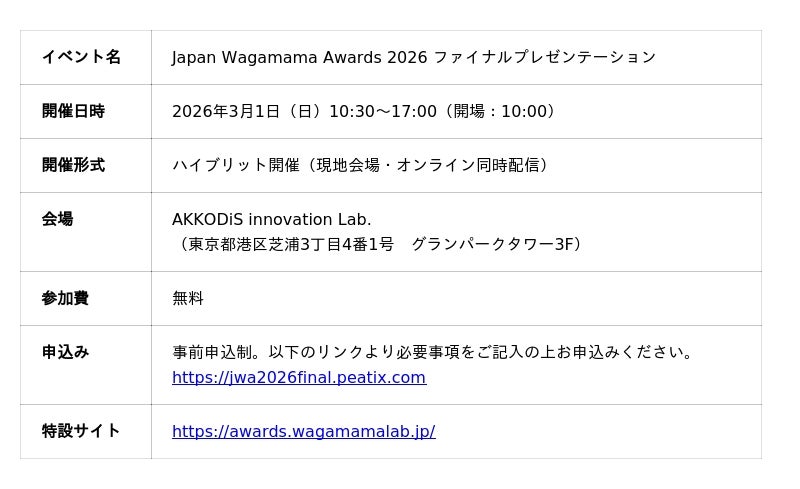 ※審査員の詳細プロフィールはこちら:https://wagamamalab.jp/posts/jwa20260301_final/