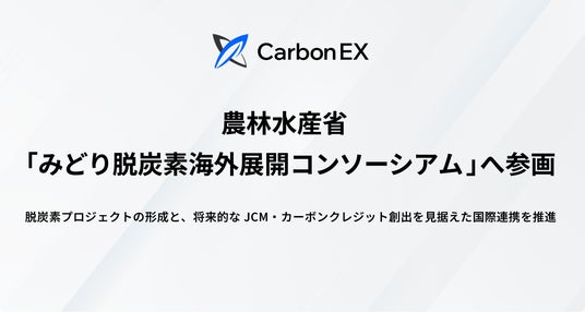 Carbon EX株式会社(本社:東京都港区、代表取締役:西和田 浩平、竹田 峻輔、以下「当社」)は、「みどり脱炭素海外展開コンソーシアム」に参画しました。本コンソーシアムは、アジアモンスーン地域をはじめとする世界各国において、農林水産分野の温室効果ガス(GHG)排出削減技術の実装を促進する官民連携の枠組みです。脱炭素プロジェクトの形成・実行を支援し、将来的な二国間クレジット制度(JCM)への発展を後押しします。