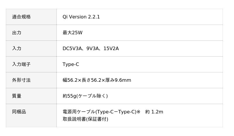 本製品が認証取得したQi2 25Wは、最大25W出力(*1)による急速充電とマグネット式(*2)による正確な位置合わせを実現した規格です。