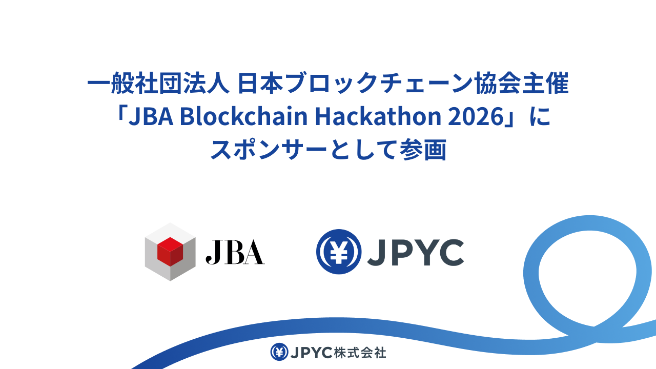 JPYC株式会社(本社:東京都千代田区、代表取締役:岡部典孝、以下:当社)は、一般社団法人日本ブロックチェーン協会(本社:東京都港区、代表理事:加納 裕三、以下「JBA」)が主催するステーブルコインをテーマにした「JBA Blockchain Hackathon 2026(以下、本ハッカソン)」に協賛企業として参画いたします。