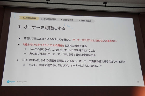 ひとつ目に挙げたのが「オーナーを明確にする」こと。これはすべてのステップに共通するポイントだ。