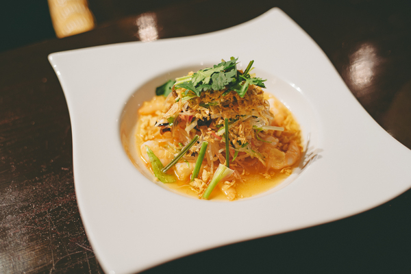 エスニック料理好き女子なら外せない定番メニュー「ヤムウンセン」もオーダー。春雨にぷりぷりの海老、野菜、ハーブをたっぷり合わせたタイ風サラダです。酸味と辛味がしっかり効いた味付けで、口に入れた瞬間に目が覚めるようなパンチ。ナンプラーのコク、ライムの爽快感、唐辛子の刺激が共存していて、お酒がどんどん進みます。