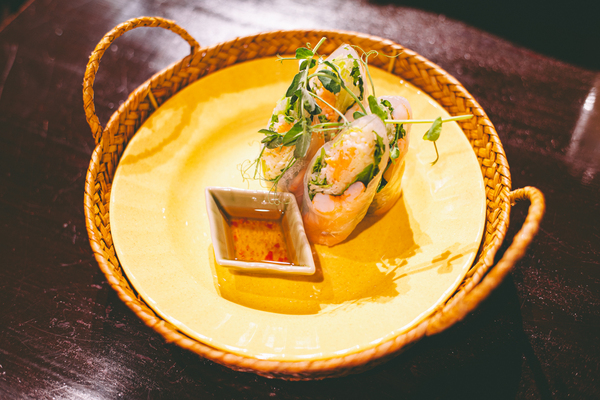前菜として注文した「海老と青パパイヤの生春巻き」。透けるライスペーパー越しに見えるぷりぷりの海老と、たっぷりの野菜がなんとも涼しげなビジュアルです。まず驚くのがそのみずみずしさ。青パパイヤのシャキシャキ感にハーブの爽やかな香り、海老の甘みが一体となり、さっぱりしながらも満足感のある味わいです。添えられたチリソースは甘酸っぱさとコクのバランスが絶妙で、ものすごい速度でペロリと平らげてしまいました。笑