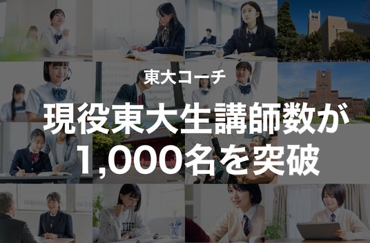 オンライン家庭教師サービス「東大コーチ」を運営するスタディチェーン株式会社(所在地:東京都渋谷区)は、東大コーチに在籍する現役東京大学生・大学院生講師数が1,000名を突破したことをお知らせします。