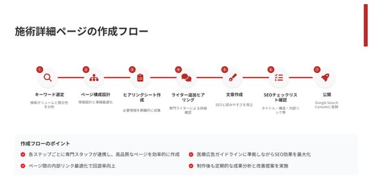その中で、美容医療では「施術名 × 地域名」で顕在顧客(今すぐ顧客)が検索する行動が一般化し、「施術詳細ページがそもそも上位に表示されているか」や、「顧客が求めている情報が網羅されている施術詳細ページなのか」が来院を左右する大きな要因になっています。