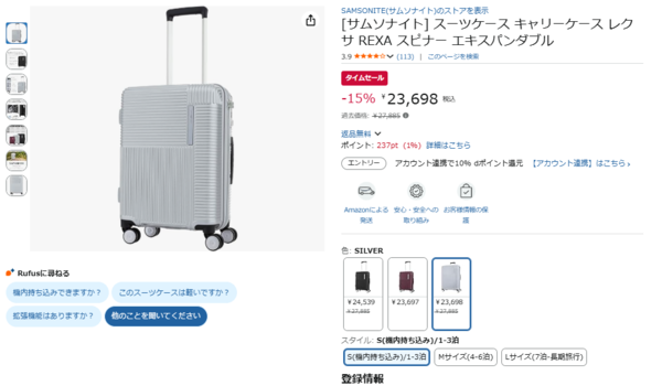 世界的な人気を誇るサムソナイトのスーツケースが過去価格27,885円から15%オフの23,698円で、Amazonタイムセールに登場!
