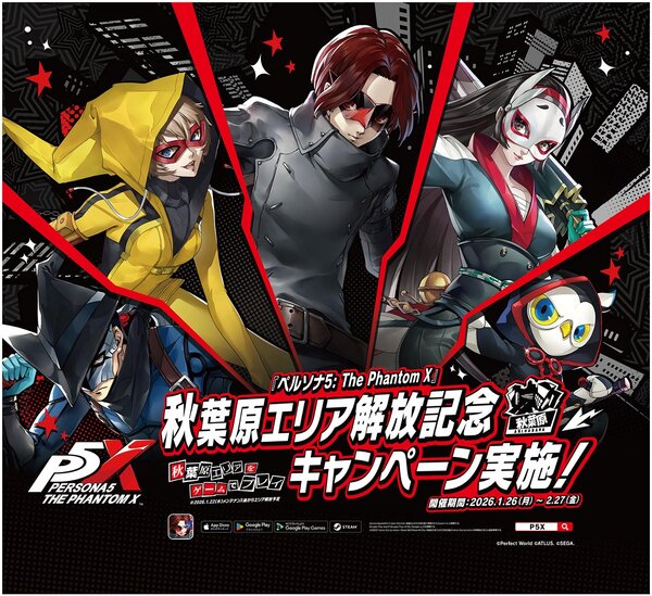『ペルソナ5: The Phantom X』Ver.3.1で解放された新都市「秋葉原」が開放されたことを記念し、現実の秋葉原の街でも『P5X』と出会える、さまざまなコラボレーションを開催。