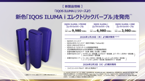 フィリップ モリス ジャパンは1月29日、加熱式たばこ「IQOS ILUMA i シリーズ」の新色「IQOS ILUMA i エレクトリックパープル」を発表した。